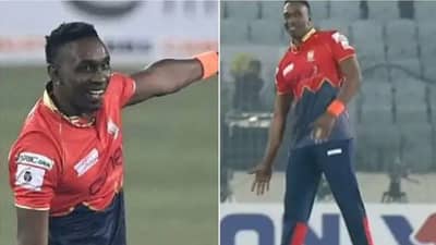 The Champion, @DJBravo47 channels his inner ?????? ?? after sending Mahidul Islam Ankon back to the pavilion! ?