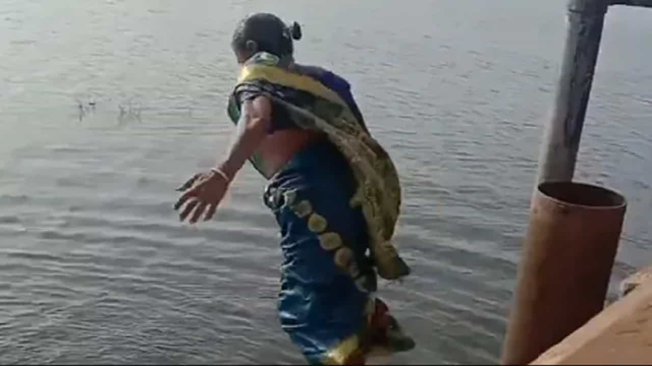 VIDEO : साडी नेसलेल्या वयोवृद्ध महिलेने नदीत उडी मारली, व्हिडीओ पाहून अनेकांचे पाय थरथरले