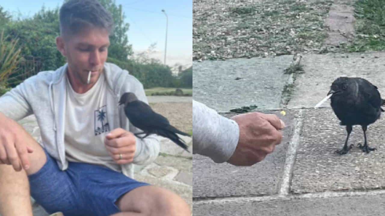 इंग्लंडमधील एका माणसाची कावळ्याशी चांगलीच मैत्री झाली. यात हे दोघे मित्र सिगारेट ओढत असे. या बातमीची सध्या सोशल मीडियावर चर्चा आहे.