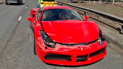 Derby. 1st April. Driver bought a Ferrari this morning and crashed it after driving it less than 2 miles. No injuries. #DriveToArrive pic.twitter.com/X4IMuflPa5