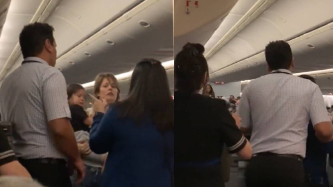या व्हिडीओमध्ये एका लहान मुलाला पकडून उभी असलेली एक महिला फ्लाइट अटेंडंटवर ओरडताना दिसत आहे.