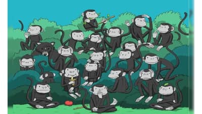 ऑप्टिकल इल्युजनच्या या चित्रात अनेक माकडे दिसतात, जे एका झाडावर बसलेले आहेत. यातील काही माकडे डोक्यावर हात ठेवून विचार करत आहेत, काही खाण्यात मग्न आहेत तर काही आजूबाजूला पाहत आहेत. या सगळ्याच्या मधोमध कुठेतरी एक अस्वलही लपलेलं असतं, जे तुम्हाला 5 सेकंदात शोधायचं आहे.