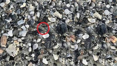 ऑयस्टर आणि दगडयांच्यात लपलेला खेकडा 9 शोधून काढा. शेअर केलेल्या फोटोमध्ये समुद्रकिनाऱ्याचे दृश्य दिसत आहे ज्यामध्ये ऑयस्टर सर्वत्र विखुरलेले दिसत आहेत. 9 सेकंदात लपलेला खेकडे शोधणे आपल्यासाठी आव्हान आहे.