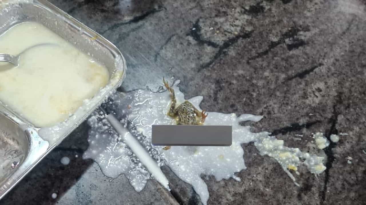 सोशल मीडियावर खानावळीच्या जेवणाला खूप नावं ठेवली जातात. कधी कधी बातम्या सुद्धा असतात की अमुक-तमुक ठिकाणी जेवणात हे-ते आढळलं. हा फोटो बघा. हा फोटो इंजिनिअरिंग कॉलेजच्या मेसचा आहे. हा फोटो खूप व्हायरल झालाय. इंजिअरिंगमध्ये जिथे पालक खूप पैसे भरून आपल्या पाल्याला शिकवतात, जिथे लाखो रुपये खर्च केले जातात तिथल्या मेसची ही अशी अवस्था आहे. काय वाटतं कसला फोटो असेल? अहो इथे चक्क जेवणात बेडूक आढळलाय.