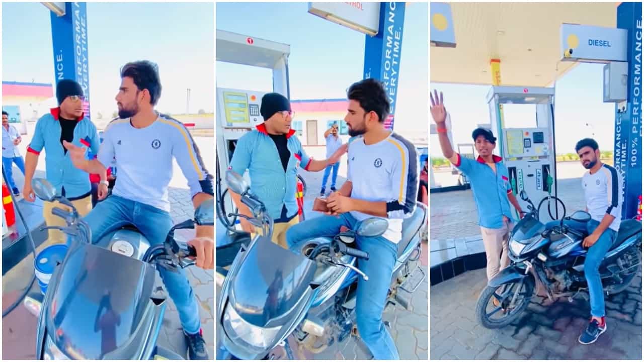 व्हिडिओमध्ये आपल्याला दिसेल, की एका बाइकवर एक व्यक्ती पेट्रोल भरायला पेट्रोल पंपावर येतो. तिथल्या कर्मचाऱ्याला तो म्हणतो, की पाच लिटर पेट्रोल टाक. मग तोही पाच लिटर पेट्रोल टाकतो. मग पैसे द्यायला तो पाकिट काढतो, तर तो कर्मचारी म्हणतो, पैस मला नको, शेजारच्या पंपावर दे. माझा थोडा प्रॉब्लेम झाला होता. मग तो दुचाकीस्वार त्या दुसऱ्या ठिकाणी जातो. त्यावेळी दोन कर्मचाऱ्यांचा संवाद होतो आणि त्याचा फायदा हा दुचाकीस्वार उचलतो.