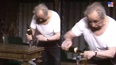 या व्हिडिओ क्लिपमध्ये एक वृद्ध मद्यधुंद अवस्थेत टेबलाजवळ उभा असल्याचे दिसत आहे. तो बाटलीतून वाइन ग्लासमध्ये भरण्याचा प्रयत्न करतो, पण त्याचे हात थरथरू लागतात. दरम्यान, त्याच्याकडे कोणी पाहत नाही ना याचीही तो खात्री करतो. यानंतर, कसातरी ग्लासमध्ये दारू भरून तो तोंडाजवळ घेतो, परंतु पुन्हा हात थरथरत असल्याने तो पिऊ शकत नाही. हे दृश्य इतकं मजेशीर दिसतंय की ते पाहिल्यावर तुम्हाला नक्कीच हसू येईल.