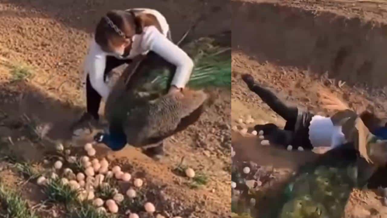 ही क्लिप 17 सेकंदांची असून, यामध्ये एक मोर अनेक अंड्यांजवळ बसलेला दिसत आहे. इतक्यात एक स्त्री त्याच्या जवळ पोहोचते आणि त्याला उचलून पुढे फेकते. यानंतर ती जमिनीवर विखुरलेली सगळी अंडी गोळा करायला सुरुवात करते. काही सेकंदानंतर मोर उडत उडत येतो आणि त्या स्त्रीला अशा प्रकारे मारतो की ती दूर पडते.