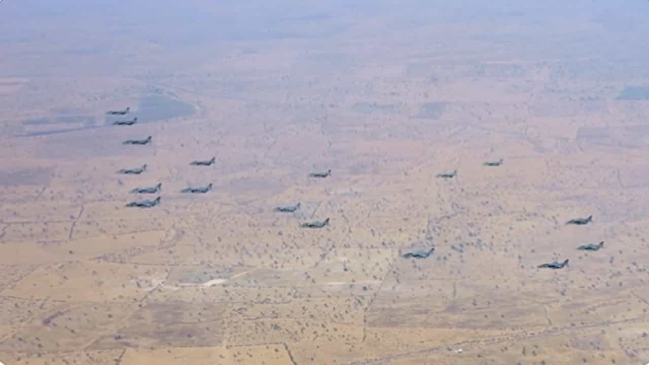 #WATCH Amrit formation comprising 17 Jaguar aircraft make a figure of 75 on #RepublicDay