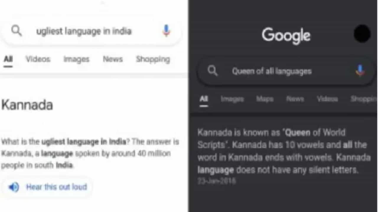 गुगलच्या एका करामतीमुळे कन्नड भाषिकांच्या भावना चांगल्याच दुखावल्या आहेत. गुगल सर्चमध्ये कन्नड भाषा ही सर्वात कुरुप भाषा असल्याचं दिसत होतं. (kannada ugliest language in india)