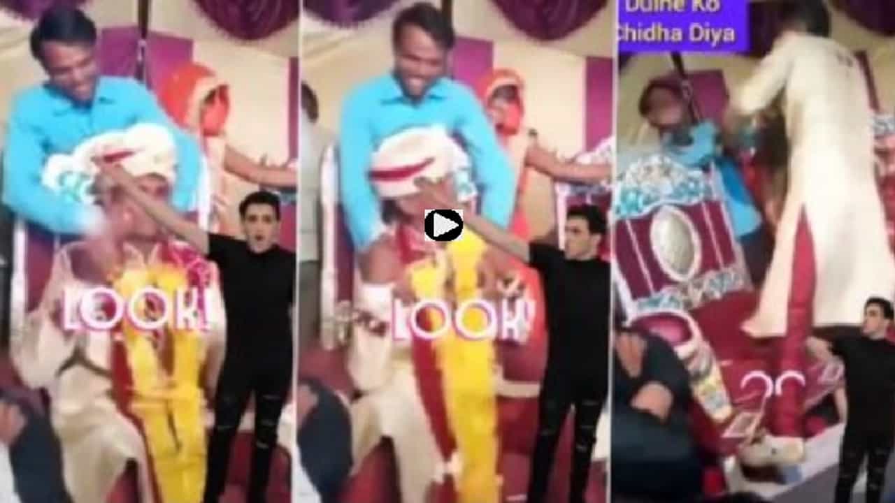 सध्या व्हायरल होत असलेला व्हिडीओसुद्धा असाच काहीसा असून त्याला पाहून तुम्हाला नक्कीच हसू फुटेल. या व्हिडीओमध्ये नवरा मुलगा चांगलाच भडकल्याचे दिसतेय. तो समोरच्या व्यक्तीला थेट मारायला उठला आहे.