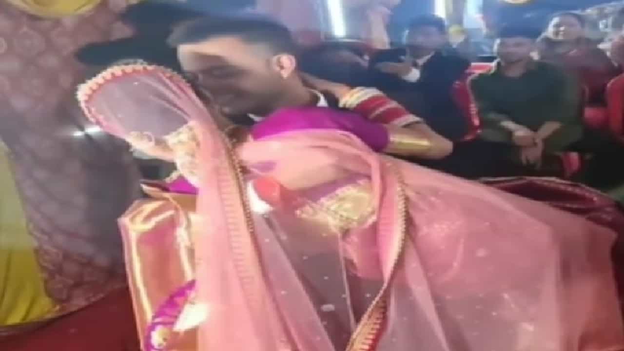 Video | नवरीला भर मंडपात उचललं, पुन्हा पुन्हा किस करण्याचा प्रयत्न, नवरदेवाचा व्हिडीओ व्हायरल