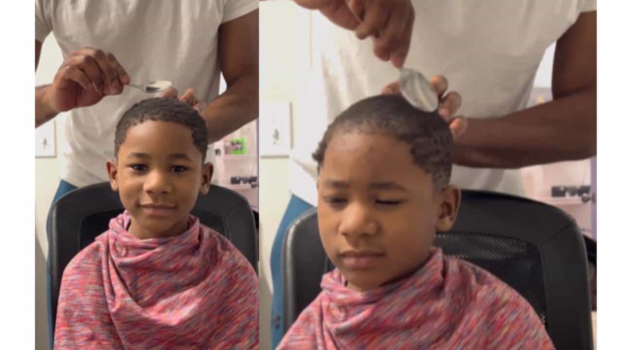 या व्हिडिओमध्ये तुम्ही पाहू शकता की, एक मुलगा केस कापण्यासाठी खुर्चीवर बसला आहे आणि त्याचे वडील चमच्याने केस कापत आहेत. रेझरसारख्या चमच्याने त्याचे वडील केस अगदी सहज कापतात आणि डिझाईनही बनवतात. मुलाचे केस पाहून ते चमच्याने कापले आहेत असे वाटणार नाही.