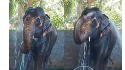 व्हिडिओमध्ये हत्ती पाईपने स्वतःला अंघोळ घालताना दिसत आहे. इतकंच नाही तर तो हा पाईप आपल्या सोंडेसह घेऊन त्या पाण्याचा आस्वाद घेत आहे. एखाद्या माणसाप्रमाणे हत्तीने हा कार्यक्रम चालवलाय. एखादी व्यक्ती आपले शरीर पाण्याने धुत आहे असं वाटतं.