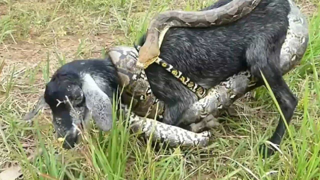 बकरा अजगराच्या तावडीतून मुक्त होण्याचा प्रयत्न करतो, पण अजगर त्याला सोडत नाही. यानंतर व्हिडीओमध्ये जे काही दिसतं ते अधिकच धक्कादायक आहे.