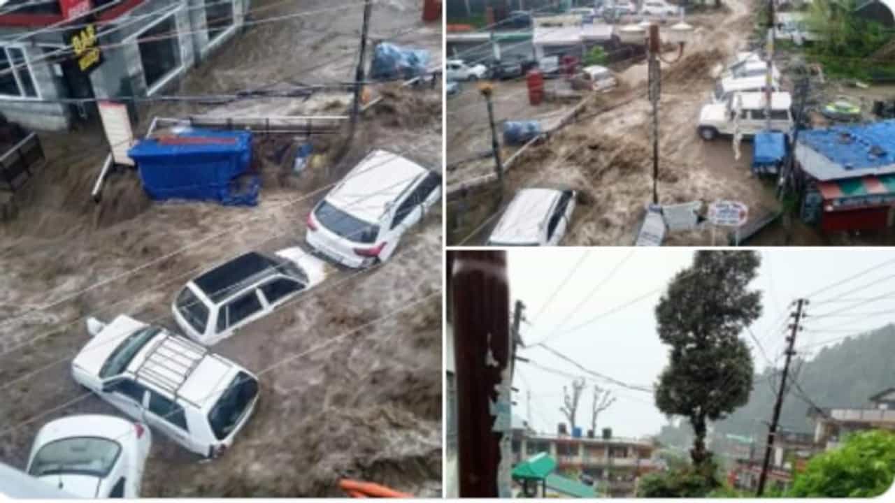 ढगफुटीमुळे धर्मशाला परिसरात सगळीकडे पाणीच पाणी साचले असून या घटनेचे अनेक व्हिडीओ सोशल मीडियावर व्हायरल होत आहेत.
