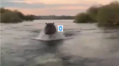 (Hippopotamus chases speed Boat video goes viral on social media)