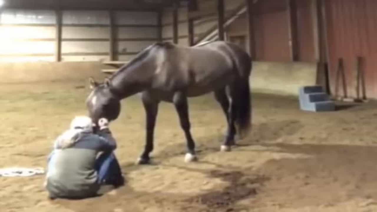 (Horse saw the owner crying then came close to make her comfortable Viral video won hearts)