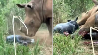 गेंड्याच्या बाळाच्या जन्माचा एक अविश्वसनीय क्षण एका छायाचित्रकाराने आपल्या कॅमेऱ्यात कैद केला आणि तो ऑनलाइन शेअर केला.