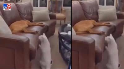 हा व्हिडिओ ट्विटरवर खूप वेगाने व्हायरल होत आहे. व्हिडिओमध्ये एक कुत्रा सोफ्यावर आरामात झोपलेला दिसत आहे. त्याच वेळी, एक मांजर सोफ्याच्या शेजारी लपलेली आहे. मांजरीला पाहून अंदाज लावला जाऊ शकतो की, ती कुत्र्याबरोबर मजा करण्याच्या मूडमध्ये आहे.
