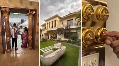 या व्हिडीओत आपण पाहू शकता की १० बेडरुमच्या या आलिशान या बंगल्याचा नजारा पाहून क्रिएटर हैराण होत आहे. त्यानंतर हा क्रिएटर हैराण होऊन म्हणतो की मला खूप काही सोने दिसत आहे. यावर घराचा मालक म्हणतो की हे असली २४ कॅरेट सोन्याचे आहे.
