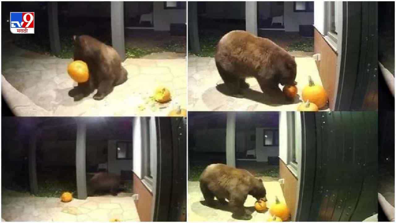 Video: घराबाहेर ठेवलेला भोपळा अस्वलाने खाल्ला, व्हिडीओ पाहून नेटकरी खूश