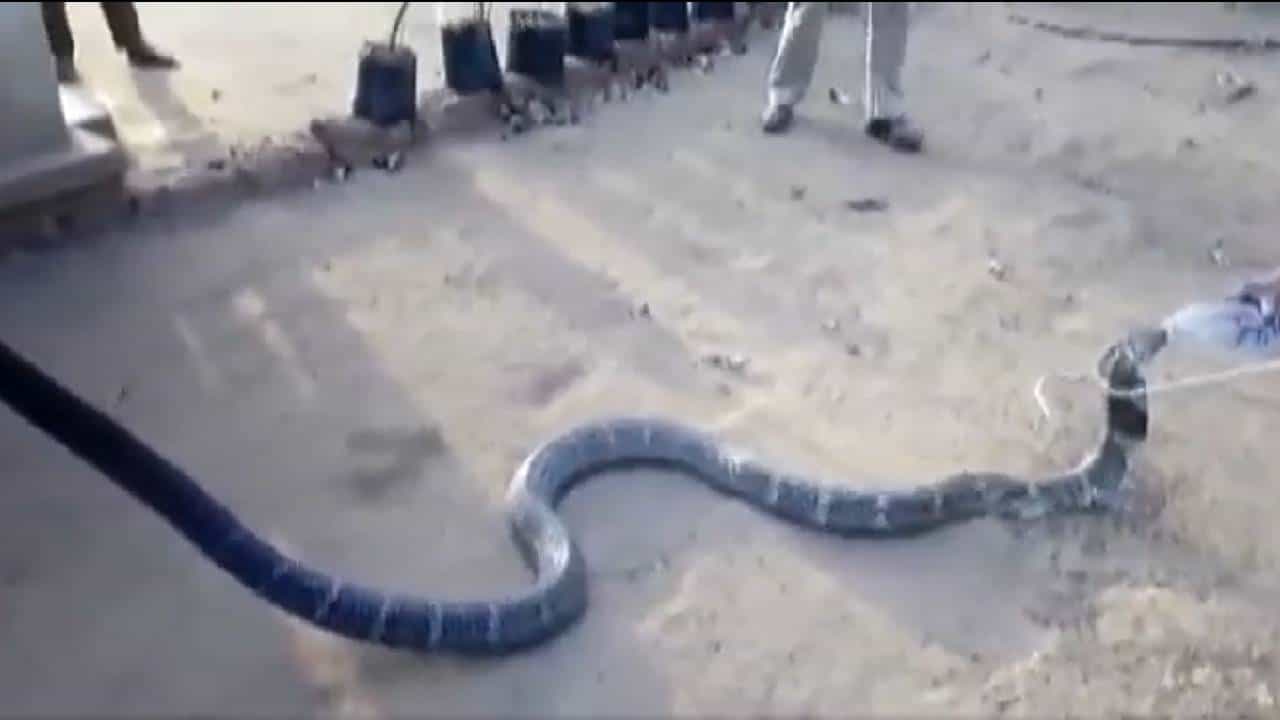 हा व्हिडिओ 58 सेकंदाचा आहे. यात आपण पाहू शकतो की, एक महाकाय किंग कोब्रा जमिनीवर आहे, ज्याला माणसाने शेपटीने पकडले आहे. तर समोर उभा असलेला वन्यरक्षक स्नेक कॅचरच्या मदतीने कोब्राच्या डोक्यावर नियंत्रण ठेवतो आणि हाताने पाणी पिऊन त्याची तहान भागवितो. आश्चर्यकारक गोष्ट घडते जेव्हा कोब्रा, हल्ला करण्याऐवजी शांतपणे प्लास्टिकच्या बाटलीतून पाणी पिऊ लागतो. यावर शेकडो युझर्स प्रतिक्रिया देत आहेत. या कोब्राची सुटका करून त्यांना सुरक्षित ठिकाणी सोडले गेले असते, अशी आशा असल्याचे काहींनी लिहिले आहे. त्याचबरोबर काही युझर्सनी लिहिलं की, हे घातक ठरू शकतं, ते किंग कोब्राच्या अगदी जवळ होते. त्याचबरोबर अनेक युझर्स या अधिकाऱ्यांना सलाम करत हे अतिशय सुखद दृश्य असल्याचं म्हटलं आहे. तहानलेल्यांना पाणी पाजणेही चांगले आहे.