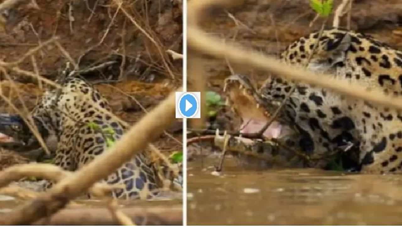 Video | बिबट्याची थेट पाण्यात उडी, एका सेकंदात मगरीची शिकार, पाहा थरारक व्हिडीओ