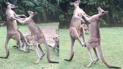 हे कांगारू माणसांसारखेच भांडतायत नाही का? विशेष म्हणजे हे दोन कांगारू मारामारी करत असताना बाकीचे कांगारू हे भांडण मजा घेऊन बघतायत. जसा माणूस माणसांची भांडणं पाहतो अगदी तसंच.