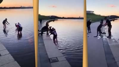 दररोज काही ना काही व्हिडिओ सोशल मीडियावर व्हायरल होत असतात. असाच एक व्हिडिओवर व्हायरल होत आहे. ज्यात एक कांगारू ऑस्ट्रेलियाच्या थंड पाण्यात अडकतो, त्याला बाहेर पडावं हे कळत नाही. आणि तेवढ्यात तिथं असलेली 2 माणसं त्या कांगारुला पाण्याबाहेर काढतात. सध्या नेटकऱ्यांना हा व्हिडीओ खूप आवडताना दिसत आहे. ( kangaroo-trapped-in-the-cold-waters-of-australia-two-person-did-the-rescue-video-viral-hero-animal-video-emotional-video)