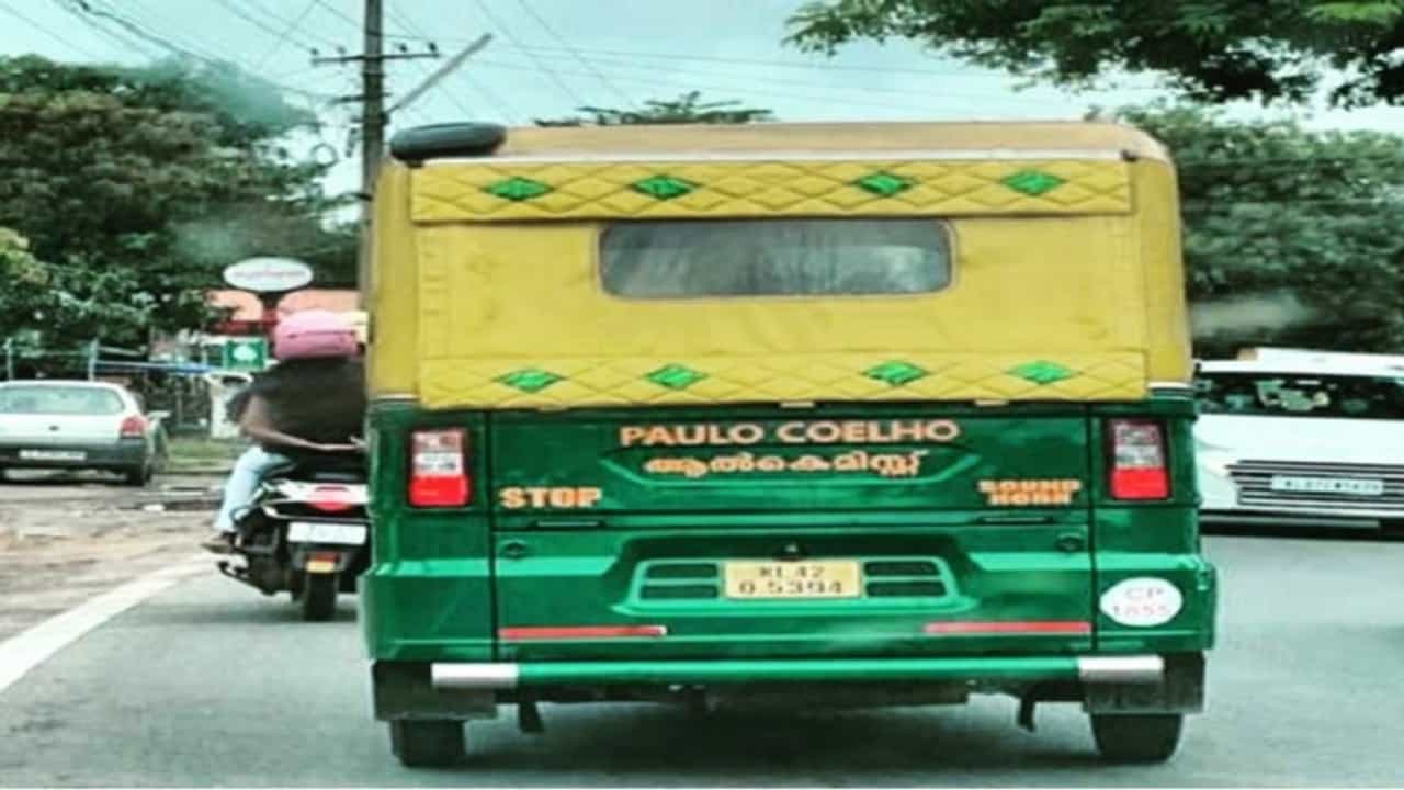 (kerala autorickshaw with paulo coelho name goes viral on social media)