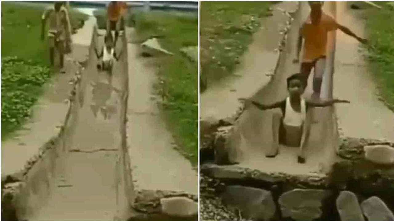 व्हायरल होणाऱ्या व्हिडीओमध्ये तुम्ही पाहू शकता की, काही मुलं तुटलेल्या आणि कोरड्या असलेल्या नालीचा वापर घसरगुंडी खेळण्यासाठी करत आहे. त्यातून हे मुलं घसरत येतात. तेवढ्यात एक मुलगा या नालीतून खाली घसरत येतो, मात्र, घसरगुंडी संपण्याआधीच हा मुलगा मोठी चूक करतो. तो घसरणं संपल्यावर पाय खाली टेकवत नाही, त्यामुळे तो सरळ जाऊस समोरच्या दगडावर आदळतो. जिथं, त्याच्या माकडहाडाला चांगलीच दुखापत होते.