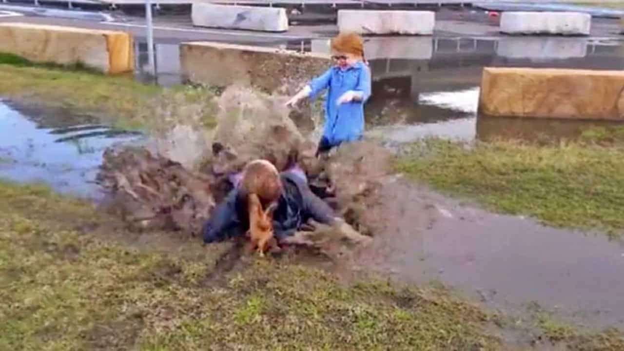 खरं तर, आपल्या मुलांना अशा गढूळ पाण्यात खेळताना पाहून आई त्यांना शिव्या देण्यासाठी आणि तिथून घेऊन जाण्यासाठी तिथून धावत येते, पण मग असं काही घडतं, की ती अचानक खाली पडते. व्हिडिओमध्ये तुम्ही पाहू शकता, की आधी एक लहान मूल पाण्यात उभे राहून खेळत आहे आणि त्याला पाहताच एक लहान मुलगीही तिथे येते, जी बहुधा त्याची बहीण असावी. आता दोन्ही मुलांना असे पाहून आई तिथून त्यांना न्यायला धावत येते, पण तेवढ्यात तिचा पाय घसरला आणि ती गढूळ पाण्यात पडली.