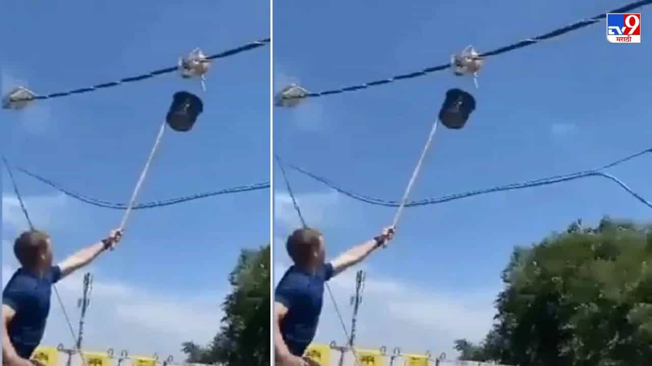 Video: तारेवर लटकल्या मांजरीच्या पिलांची जुगाडाने सुटका, लोक म्हणाले, आम्हाला ‘इश्क’ सिनेमाचा तो सीन आठवला!