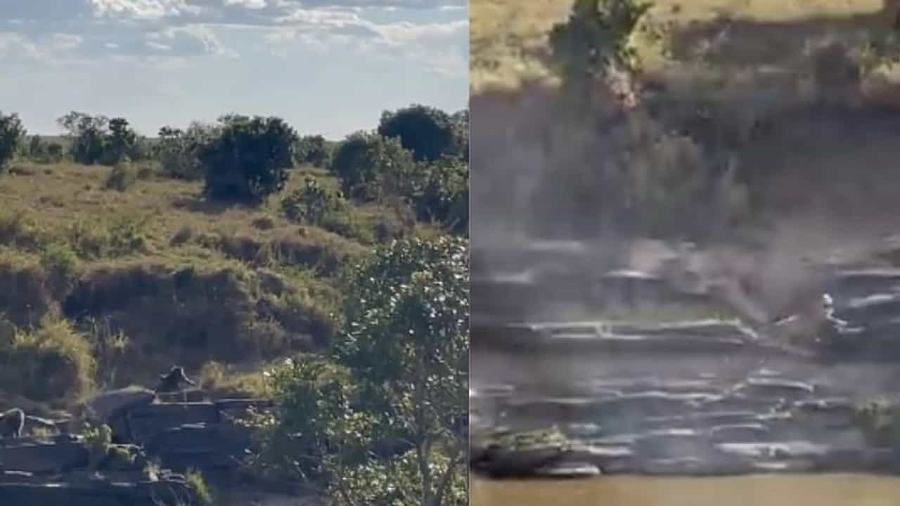 व्हायरल होत असलेल्या व्हिडीओमध्ये एक चित्ता आणि दोन माकड दिसत आहेत. बिबट्याने एका प्राण्याची शिकार केल्याचं दिसत आहे. त्याच्या तोंडात काहितरी आहे. कदाचित ते माकडाचे पिल्लू असावे.