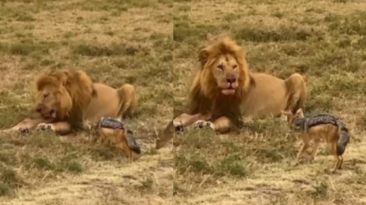 Viral Video : सिंह आणि तरसाची वेगळी केमेस्ट्री सांगणारा एक व्हीडिओ सध्या सोशल मीडियावर व्हायरल होत आहे. यात दोन तसराची पिल्लं आणि एक सिंह दिसतोय. शिकार केल्यानंतर सिंह जंगलात बसला असतानाचा हा व्हीडिओ सध्या व्हायरल होत आहे.