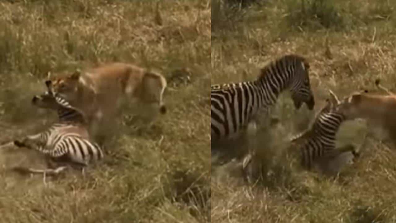 Viral Video : झेब्राच्या पिल्लावर हल्ला, आईच्या निर्धारापुढे सिंहाचाही नाही लागला टिकाव, पाहा थरारक व्हीडिओ…