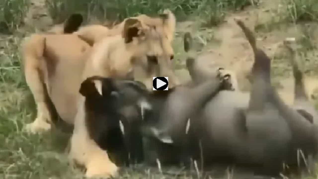 (Lion hunting brutal attack on Pig for food video goes viral on social media)