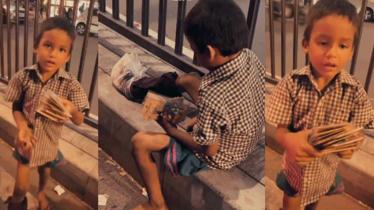 गांधीनगर: उदरनिर्वाहासाठी रस्त्यावर सामान विकणारी मुले तुम्ही पाहिली असतील. उपजीविकेसाठी कष्ट करून शाळेत जाणारी मुले पाहून मन हेलावून जाते. गुजरातमधील अहमदाबादमधील एक व्हिडिओ इन्स्टाग्रामवर व्हायरल होत आहे, ज्यामध्ये एक लहान मुलगा रस्त्यावर कि चेन विकताना दिसत आहे.