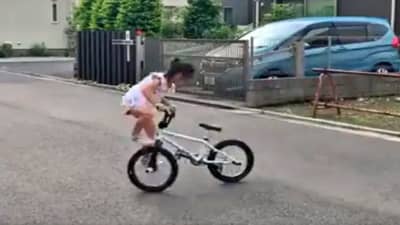 व्हिडिओमध्ये तुम्ही बघू शकता, की सायकल चालवत असताना ती मुलगी अचानक सीटवरून उतरते आणि हँडल वळवून त्यावर पुढे उभी राहते. यानंतर ती चालताना सायकलचे मागील चाक पायांच्या साहाय्याने उचलते आणि सायकल अगदी जोशात फिरवते. त्यानंतर ती पुन्हा सायकल चालवायला लागते. तिच्या सायकलची सुरुवात आणि शेवट पाहून ती सायकलवर एवढा धोकादायक स्टंट कसा करू शकते, याचा अंदाजही येत नाही. तिला स्टंट करताना पाहून जणू काही स्वप्नच असल्यासारखे वाटते, कारण सहसा अशी लहान मुले फक्त सायकल चालवायला शिकत असतात, स्टंटबाजी तर सोडाच.