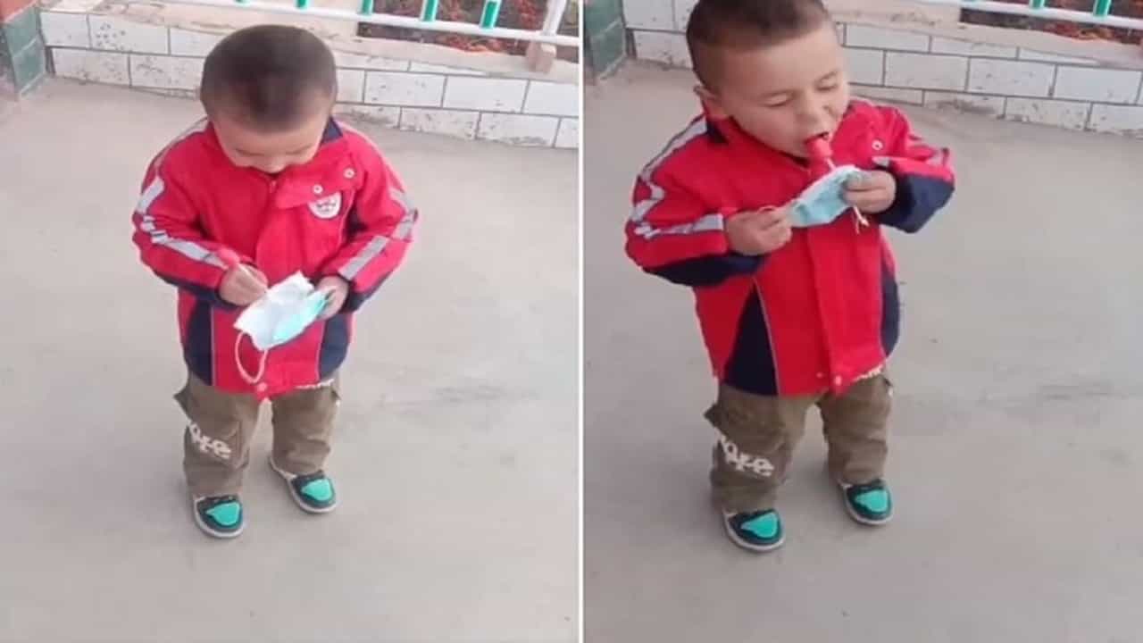 Vic या ट्विटर हँडलवर हा मजेदार व्हिडिओ शेअर केला आहे. अवघ्या 15 सेकंदांच्या या व्हिडिओला लोक लाइक करत आहेत. एका यूझरनं लिहिलं, की खूप गोंडस बाळ.. मास्कशिवाय फिरणाऱ्या मोठ्यांसाठी तो आदर्श आहे’. सोशल मीडिया यूझर्स त्याचं कौतुक करत आहेत.