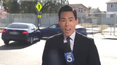 LA News crew does a story about the most dangerous intersection in the area and witnesses an accident live.