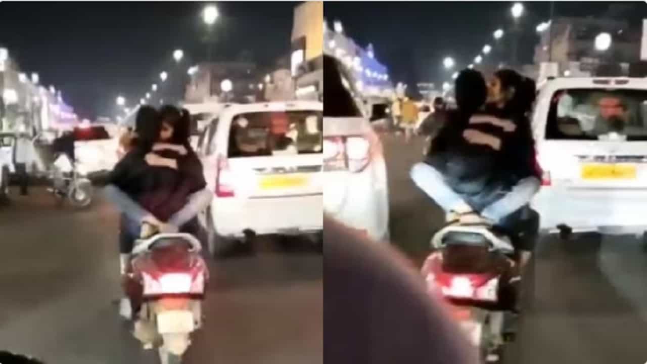VIDEO | तिला स्कूटरवर उलटं मांडीवर बसवून किसिंग करत शहरभर फिरणाऱ्याचा पोलीस घेतायत शोध
