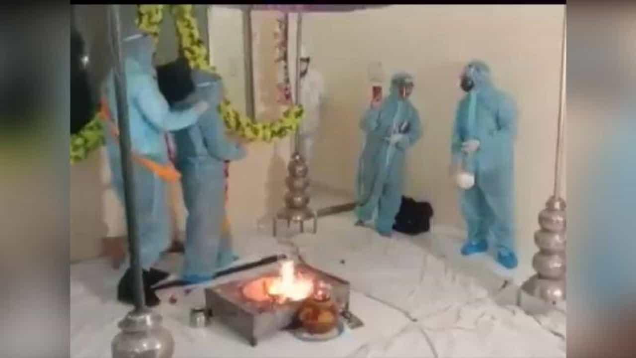VIDEO : तुम्ही असं लग्न कधी बघितलंच नसेल, नवरदेव कोरोना पॉझिटिव्ह, नवरा-नवरीसह नातेवाईकही पीपीई किटमध्ये