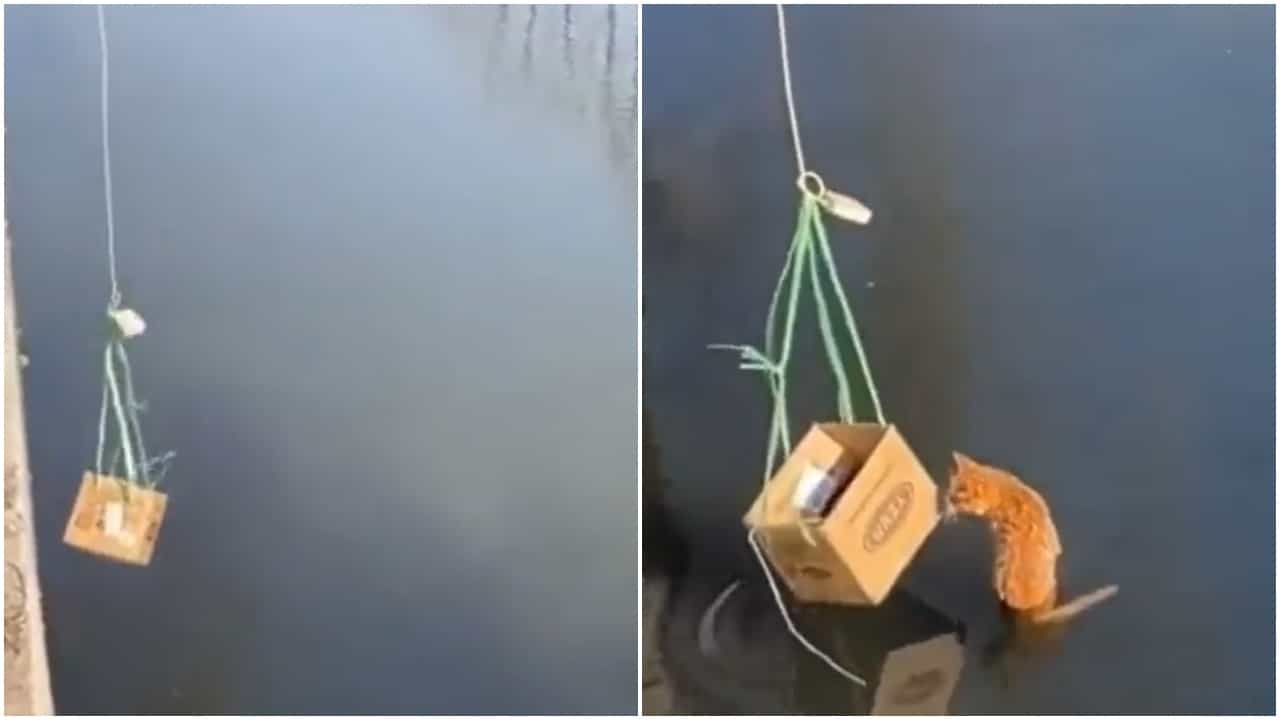 व्हिडिओमध्ये तुम्ही पाहू शकता, की मांजर पाण्यात पडली आहे आणि एक व्यक्ती तिला बाहेर काढण्यासाठी वरून एक कार्टून बॉक्स टाकते, ज्यामध्ये मांजर खालून वर येते. म्हणजेच पाण्यातून बाहेर पडते. त्या माणसाने तिला पाण्यातून बाहेर काढण्याचे मोठे काम केले. हा व्हिडिओ लोकांना खूपच आवडला आहे. संकटात सापडलेल्या माणसाला माणूस मदतही करत नाही, तर एका व्यक्तीने मांजरीसाठी इतके केले, असे लोकांना वाटत आहे. व्यक्तीची ही मदत कौतुकास्पद आहे.