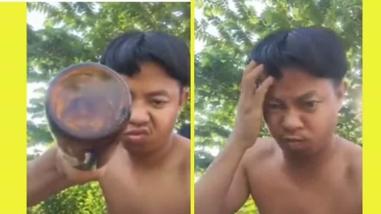 (man hurt himself while trying to break glass bottle on his head video went viral on social media)