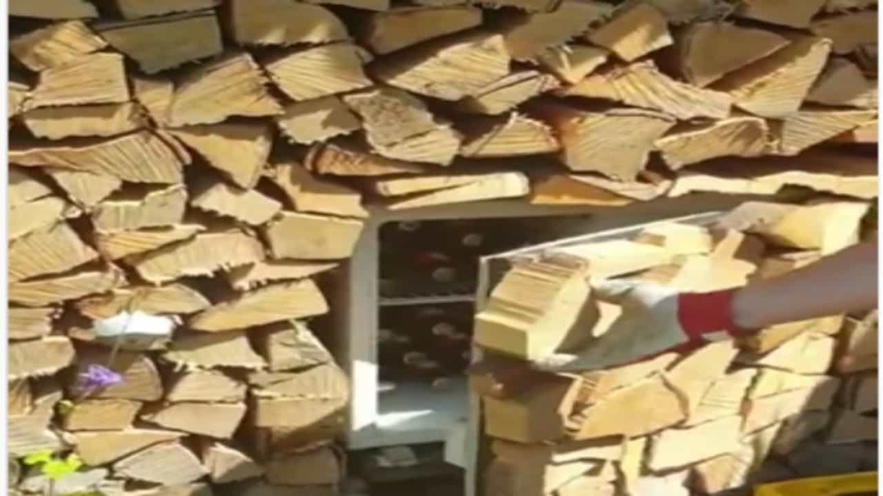 मात्र, व्हिडीओमध्ये एक व्यक्ती आल्यानंतर सगळं काही बदललं आहे. त्याने लाकडांजवळ जाऊन एक दरवाजा उघडला आहे. हा दरवाजा उघडल्यानंतर लाकडामध्ये एक मोठा फ्रिज लपवल्याचे आपल्याला समजते आहे. तसेच या फ्रिजमध्ये काही बॉटल्ससुद्धा दिसत आहेत. या बॉटल्समध्ये मद्य असावे असा अंदाज बांधला जातोय.