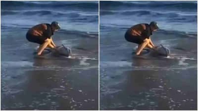 व्हायरल होणाऱ्या व्हिडीओमध्ये तुम्ही पाहू शकता की, एक माणूस समुद्रकिनारी फिरत आहे, जेव्हा त्याला पाण्याबाहेर तडपत असलेला डॉल्फिन दिसतो. तेव्हा हा माणूस त्याचा जीव वाचवण्यासाठी त्याला पुन्हा समुद्रात ढकलतो.