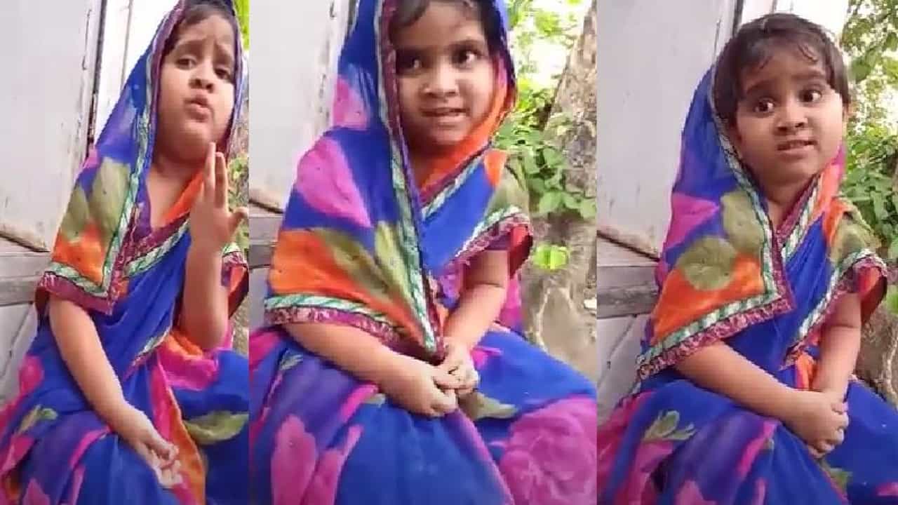 व्हिडीओतील गोड मुलगी लग्न झालेल्या बायकांसारखी साडी घालून बसली आहे. तिचे संवाद आणि हावभाव वयस्कर महिलांसारखेच आहेत. तिचा हा व्हिडीओ पाहून तुमचा मूड नक्कीच फ्रेश होईल.