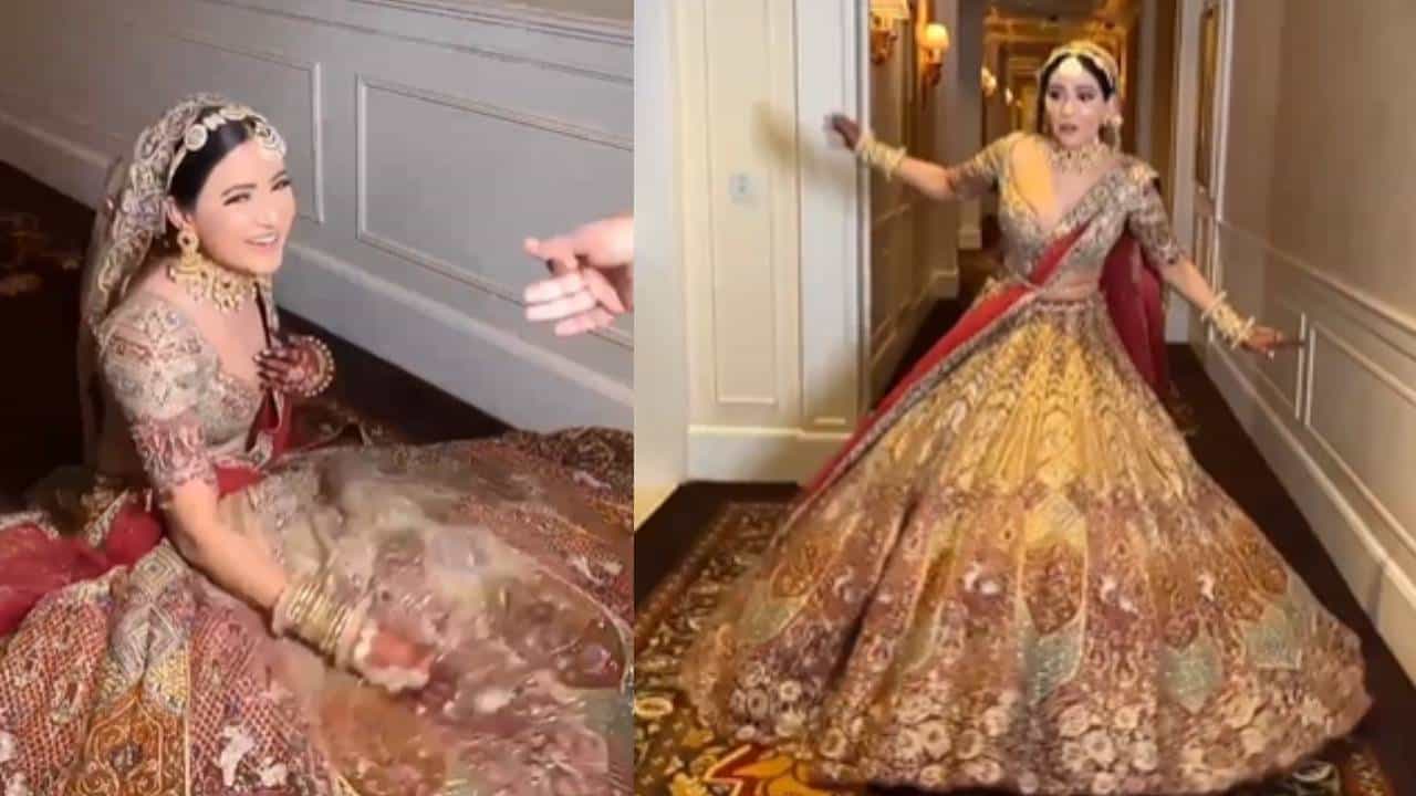 जर तुम्ही इंटरनेटवर सक्रिय असाल, तर तुम्हाला पाकिस्तानी व्हायरल गर्ल आयशा बद्दल माहित असेलच. एक गाणे तिच्या डान्स स्टेप्सने जगभर व्हायरल कसं झालं हे तुम्हाला चांगलंच माहीत असेल. त्या गाण्याची क्रेझ आता अशी आहे की प्रत्येकालाच त्यावर रील बनवायची आहे. पण सध्या एका वधूचा व्हिडिओ व्हायरल होत आहे. ज्यामध्ये ती मंडपात जाण्यापूर्वी या गाण्यावरचे व्हिडिओ शूट करत आहे. पण यादरम्यान तिच्यासोबत असे काही घडते की तुम्ही खूप हसाल.