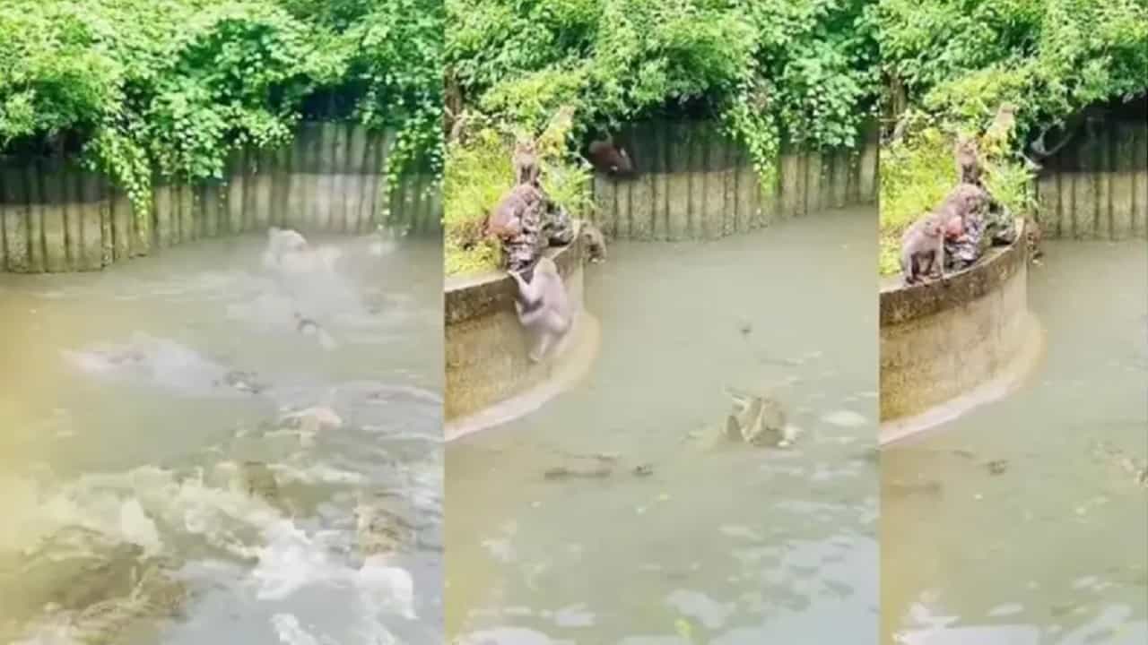 या व्हिडिओमध्ये तुम्ही पाहू शकता की, माकडांचा एक कळप आहे, जो मगरीच्या वर धावताना दिसत आहे. यादरम्यान अनेक वेळा मगरी माकडांना आपली शिकार बनवण्याचा प्रयत्न करत आहेत, मात्र माकडे त्यांच्या हाती येत नाहीत. व्हिडीओ पाहून अनेक यूजर्स आश्चर्यचकित झाले आहेत. कारण माकडांचा हा पराक्रम खूपच आश्चर्यकारक आहे.